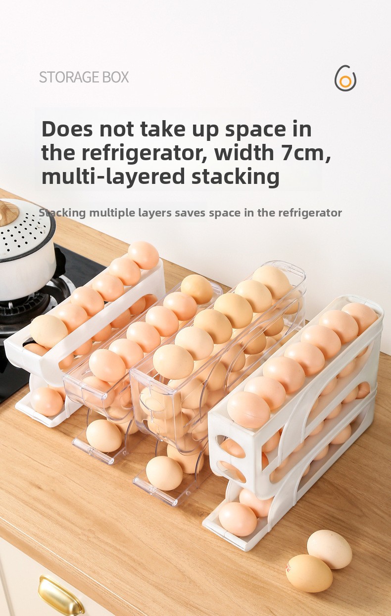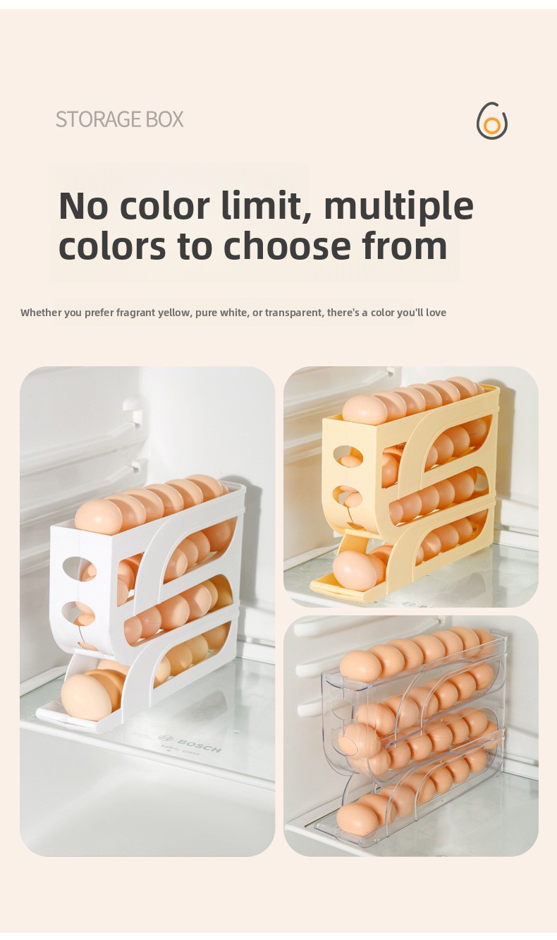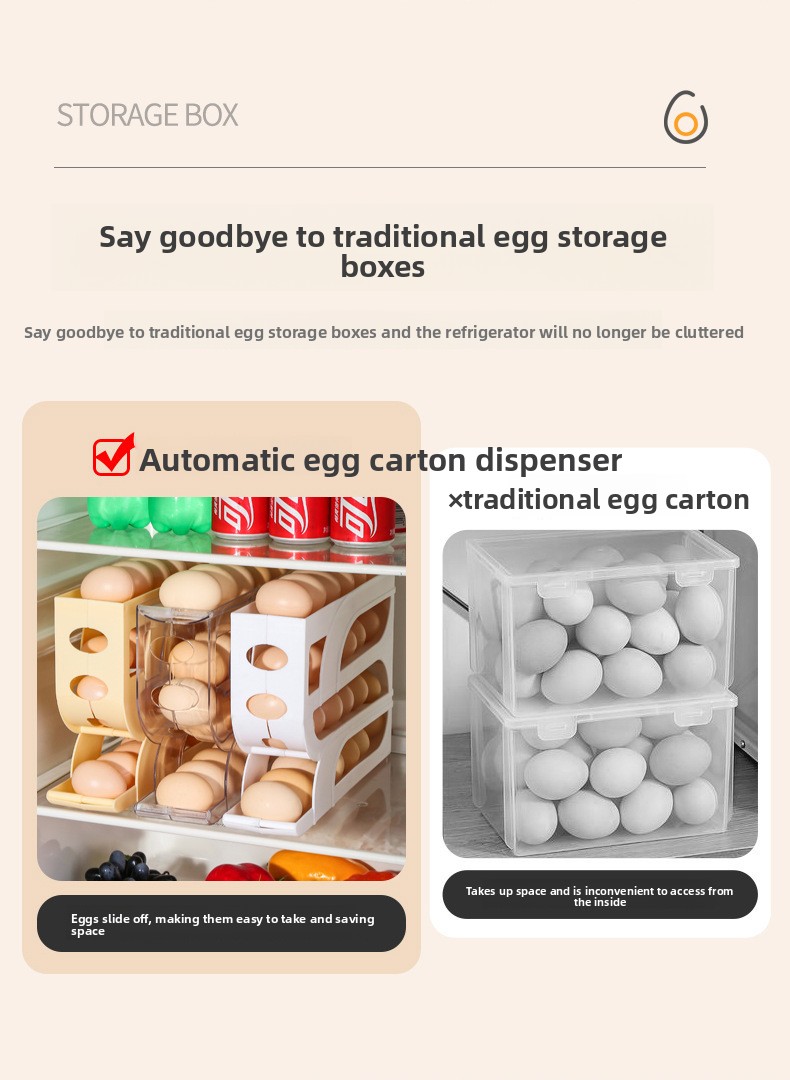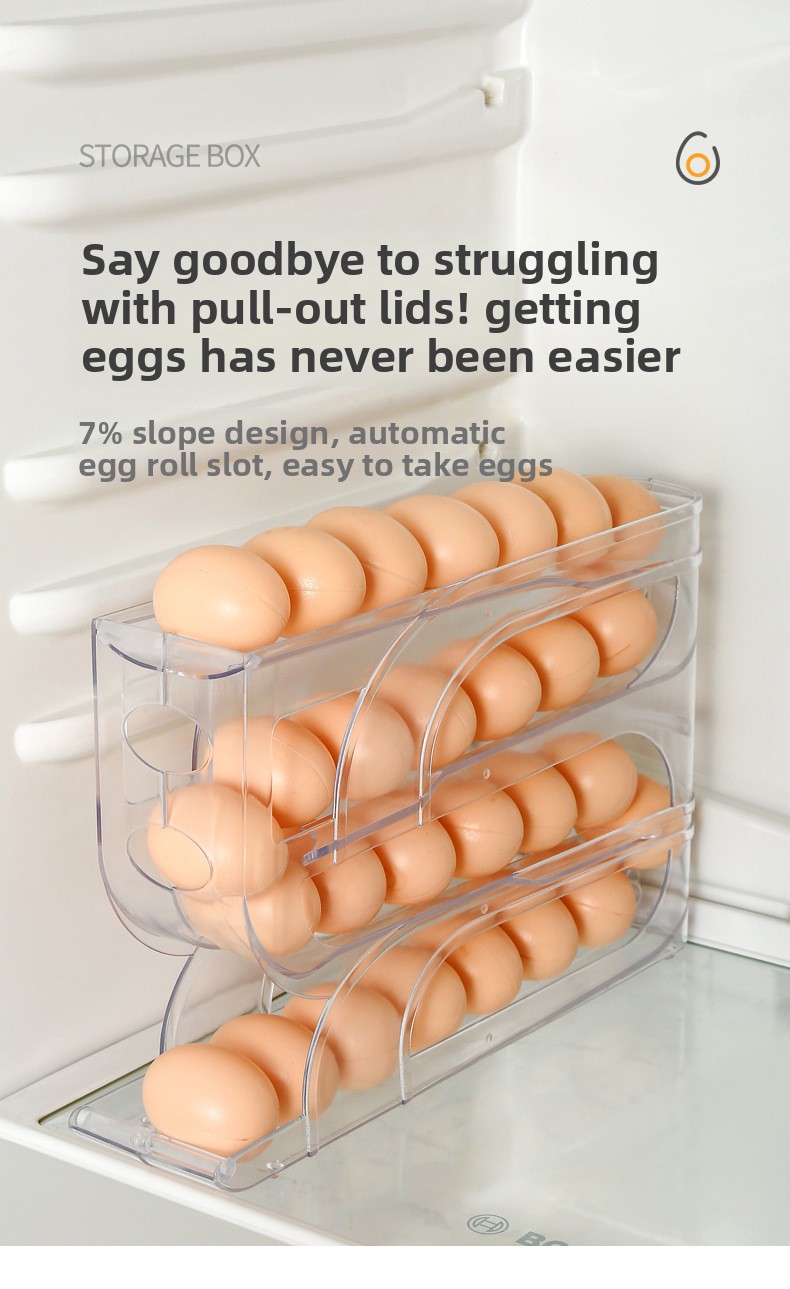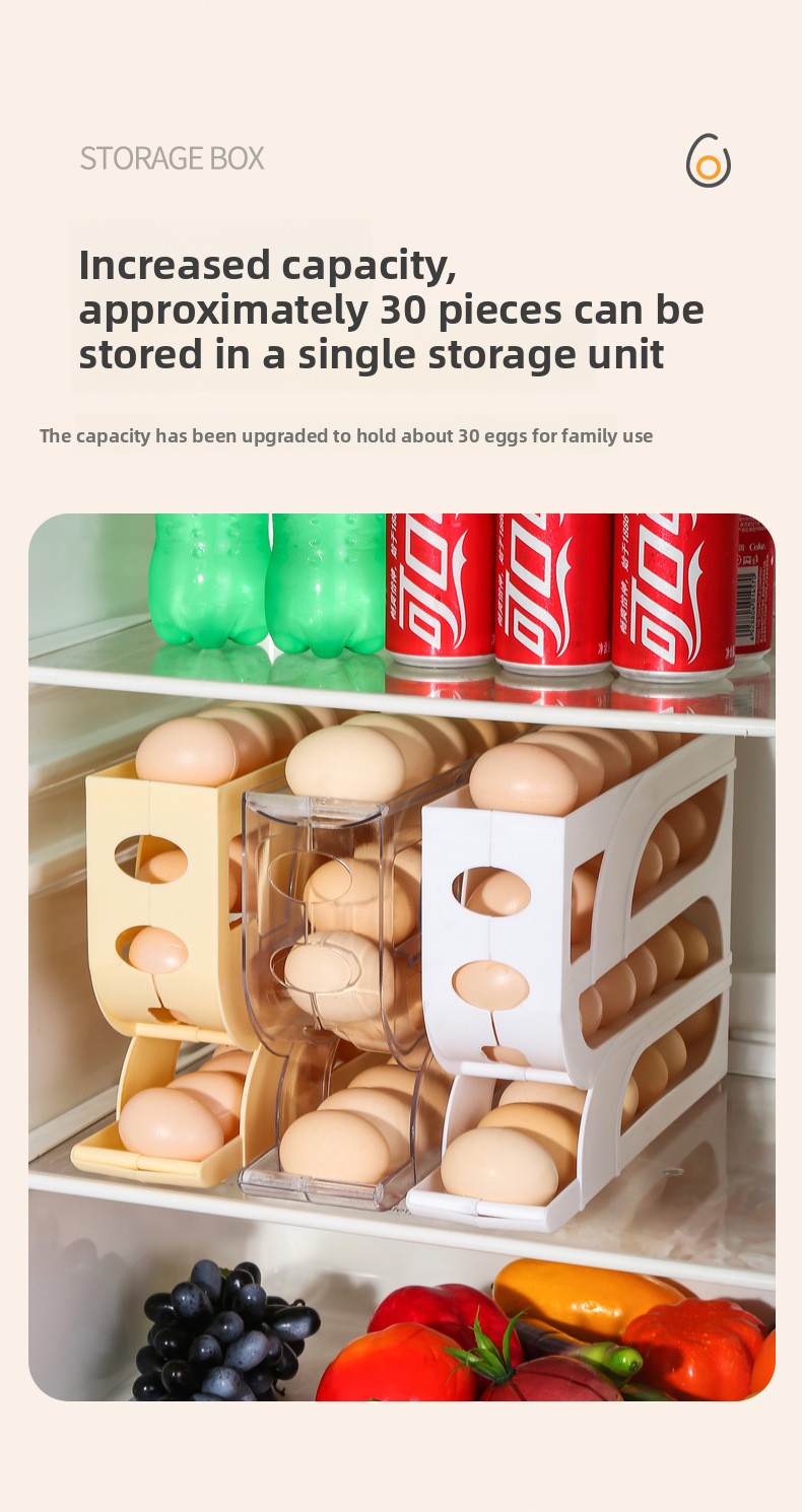 Rolling Egg Storage Box Auto-Scrolling Egg Holder for Refrigerator, Large-Capacity Fridge Egg Organizer with Slide Design