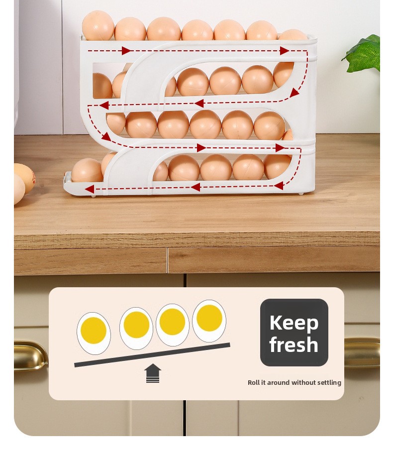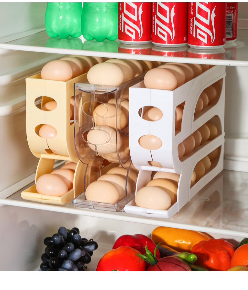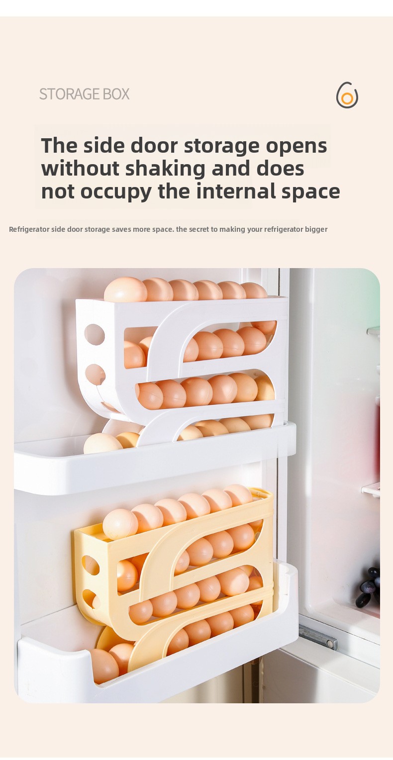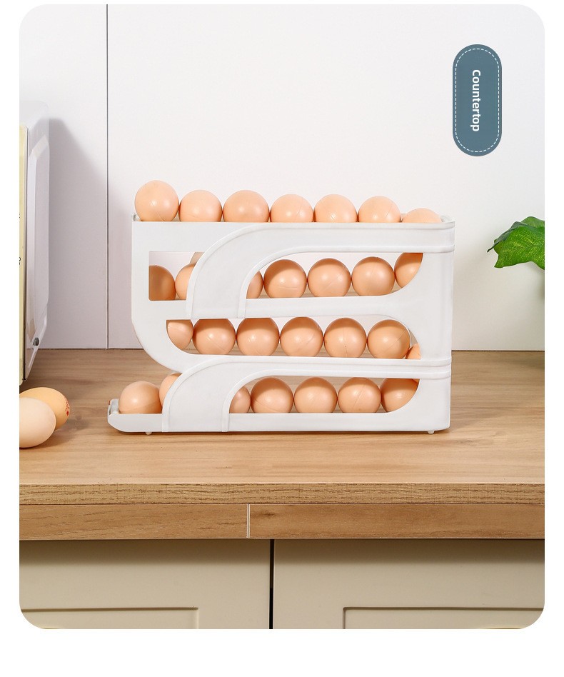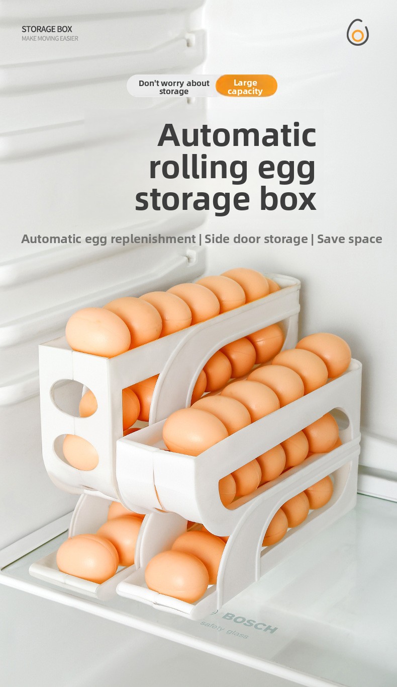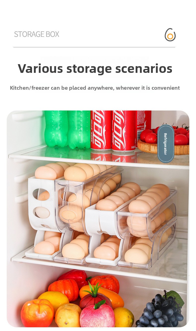 Rolling Egg Storage Box Auto-Scrolling Egg Holder for Refrigerator, Large-Capacity Fridge Egg Organizer with Slide Design