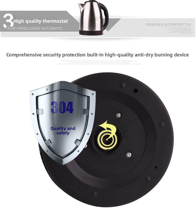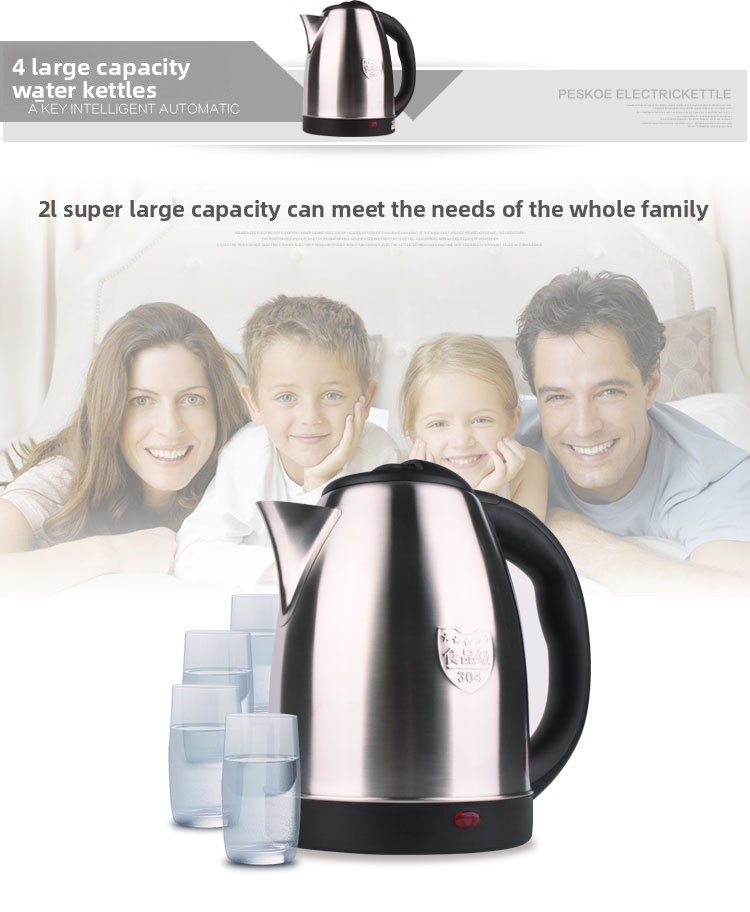 304 Stainless Steel Electric Kettle Fast Boil, Auto Shut-Off, 1.8L Household Water Boiler