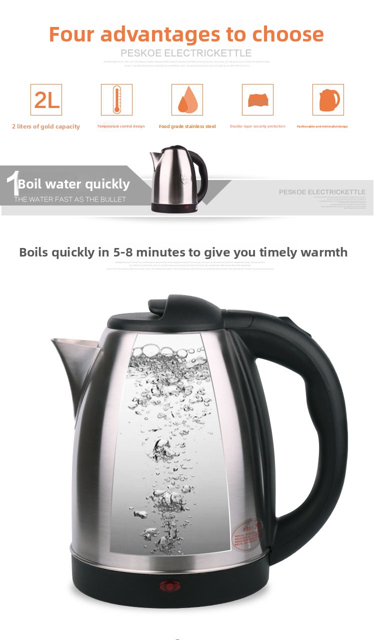 Rapid Heating: 1500W power heats 2L water in 5-7 minutes