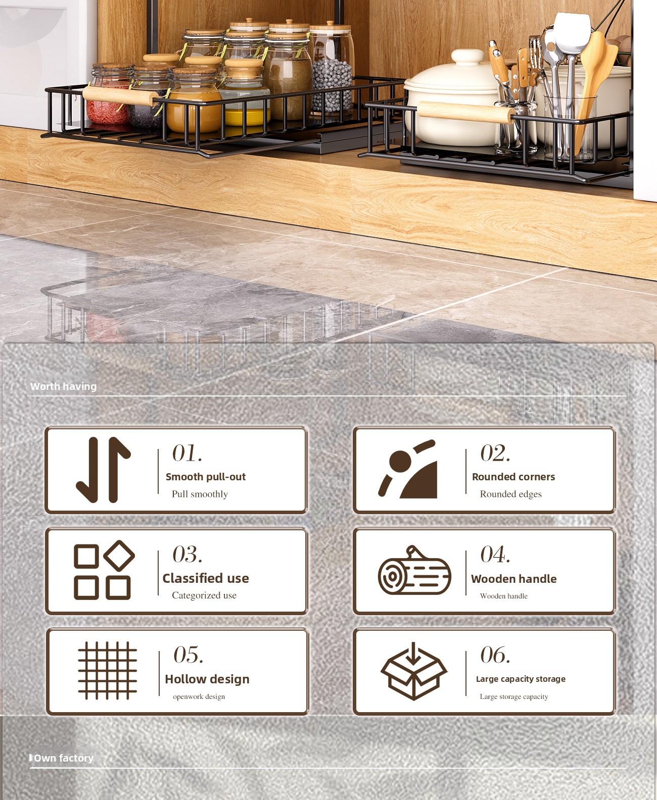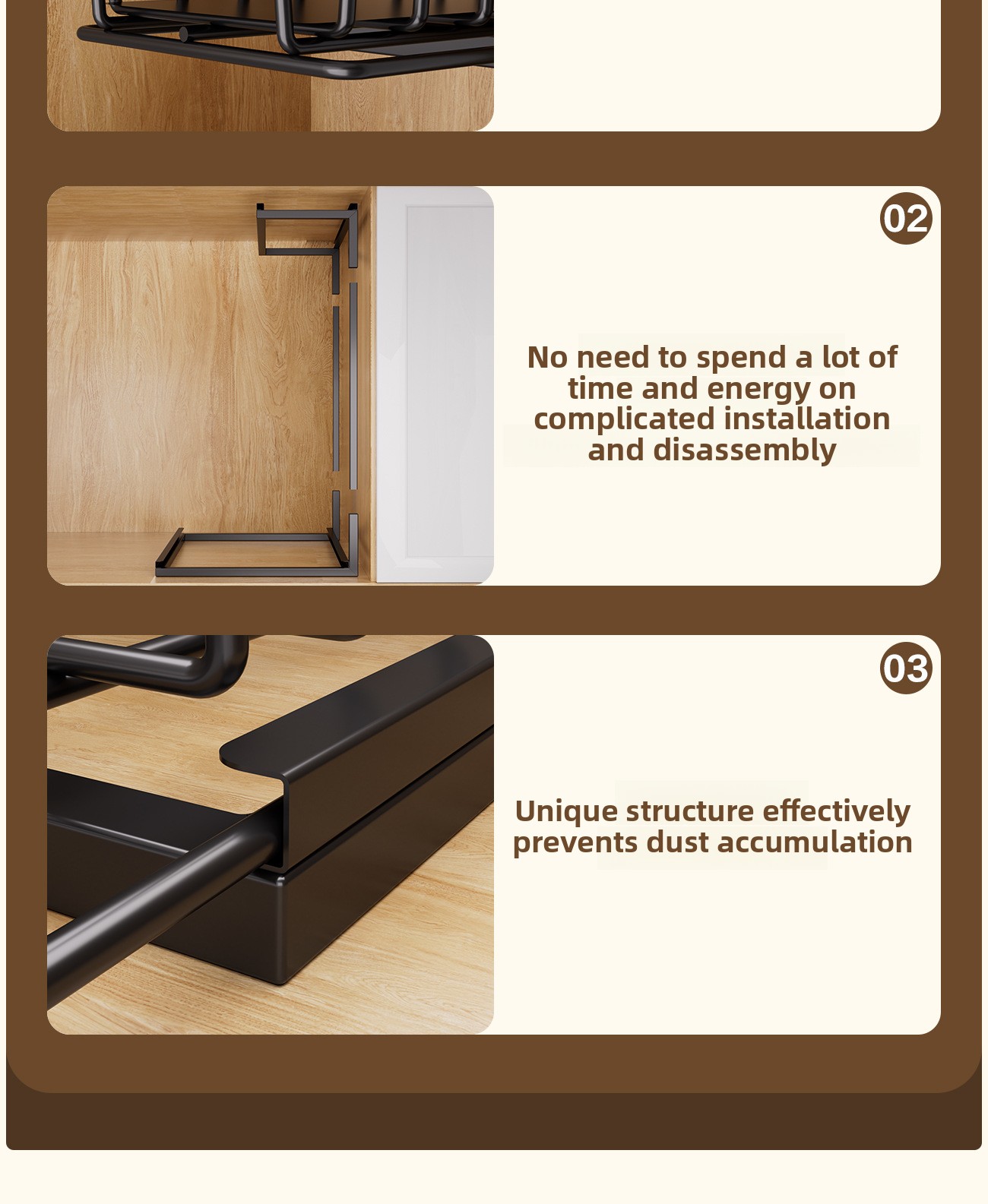 Double-layer design: Provides efficient storage organization with two separate levels for better space utilization