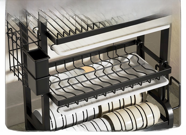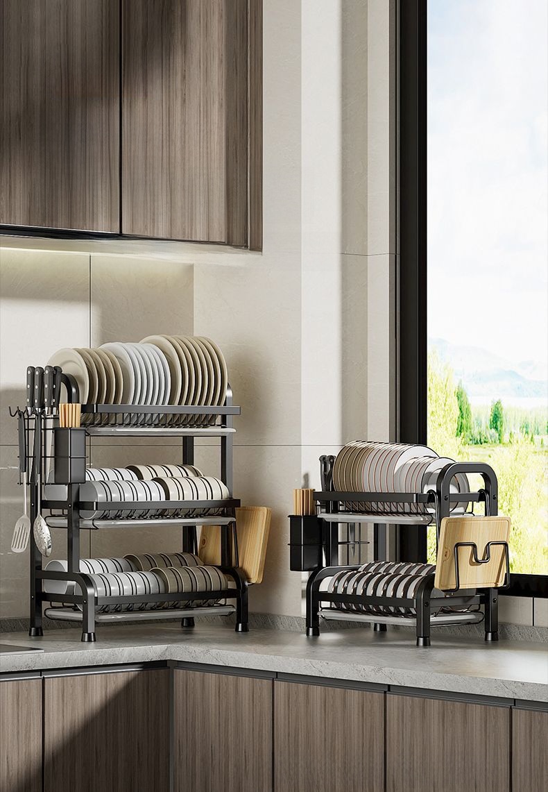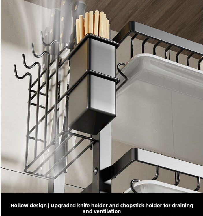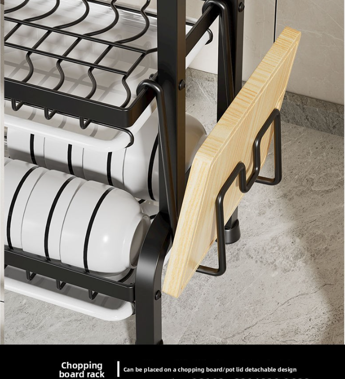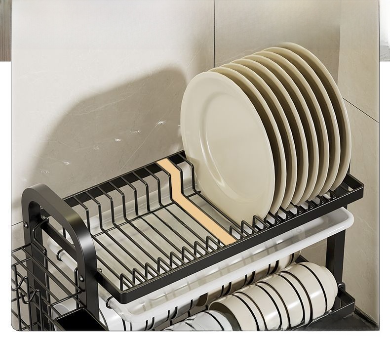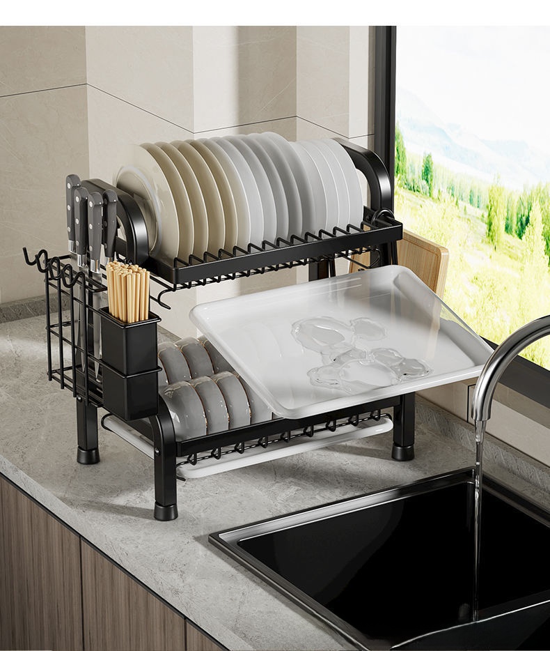 Dual-layer design: Efficiently organizes and drains dishes, utensils, and cutting boards.
