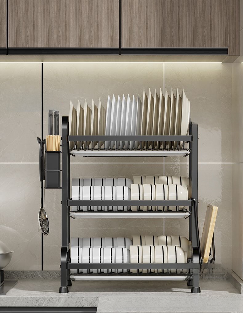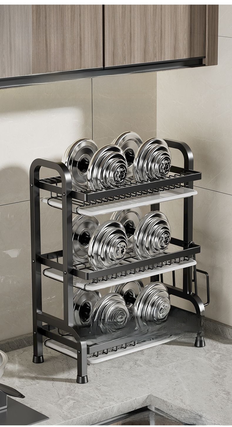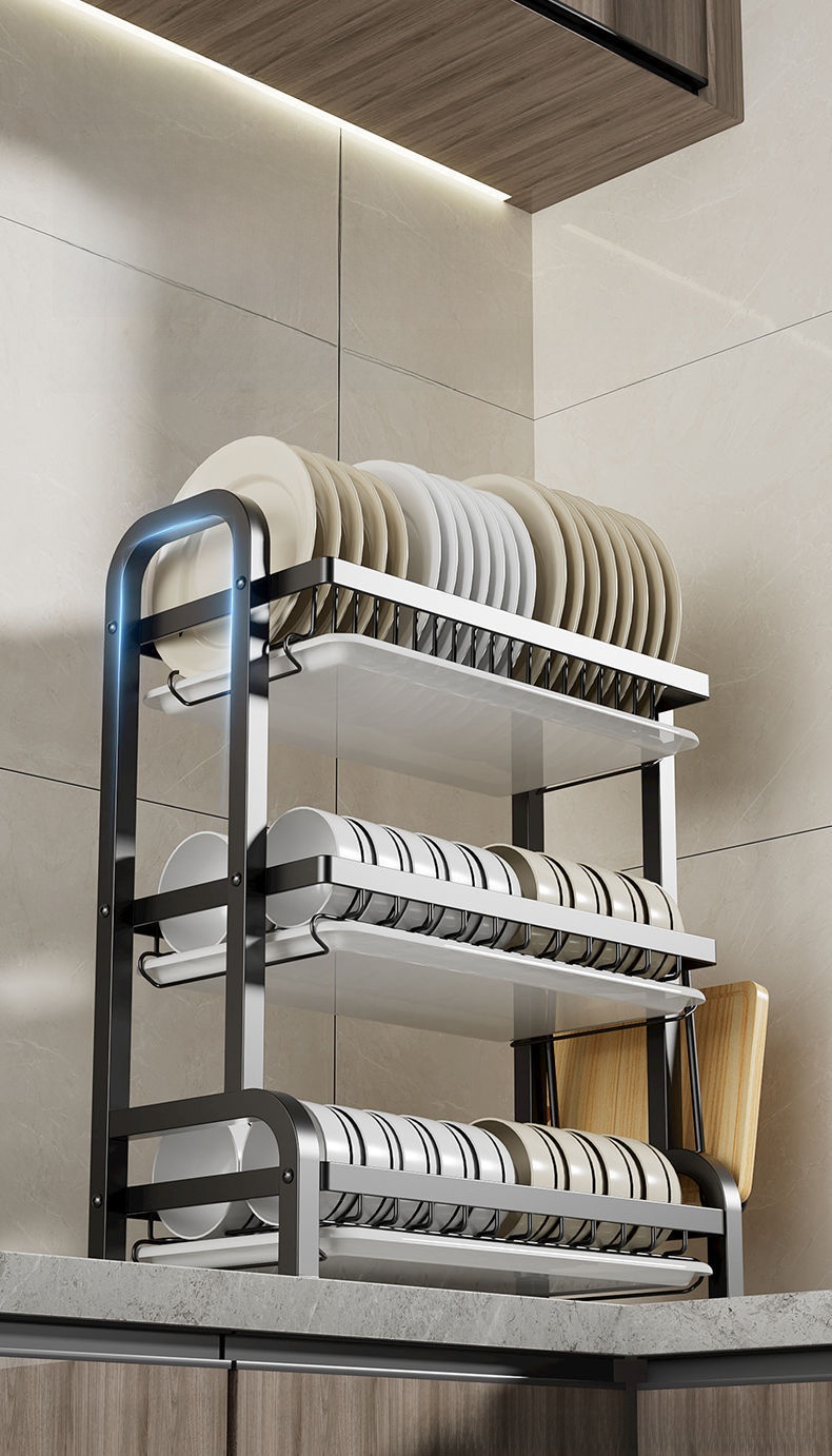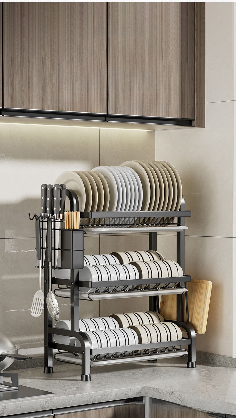 Dual-layer design: Efficiently organizes and drains dishes, utensils, and cutting boards.