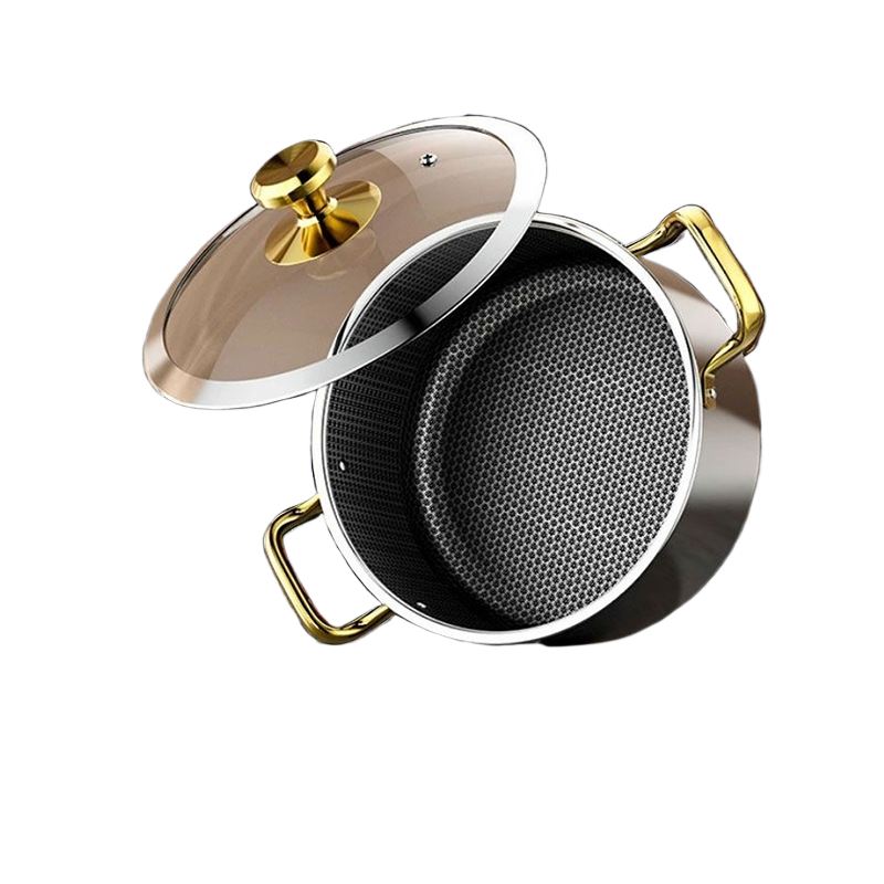 Non-stick surface: Honeycomb design for even heat distribution and easy cleaning.