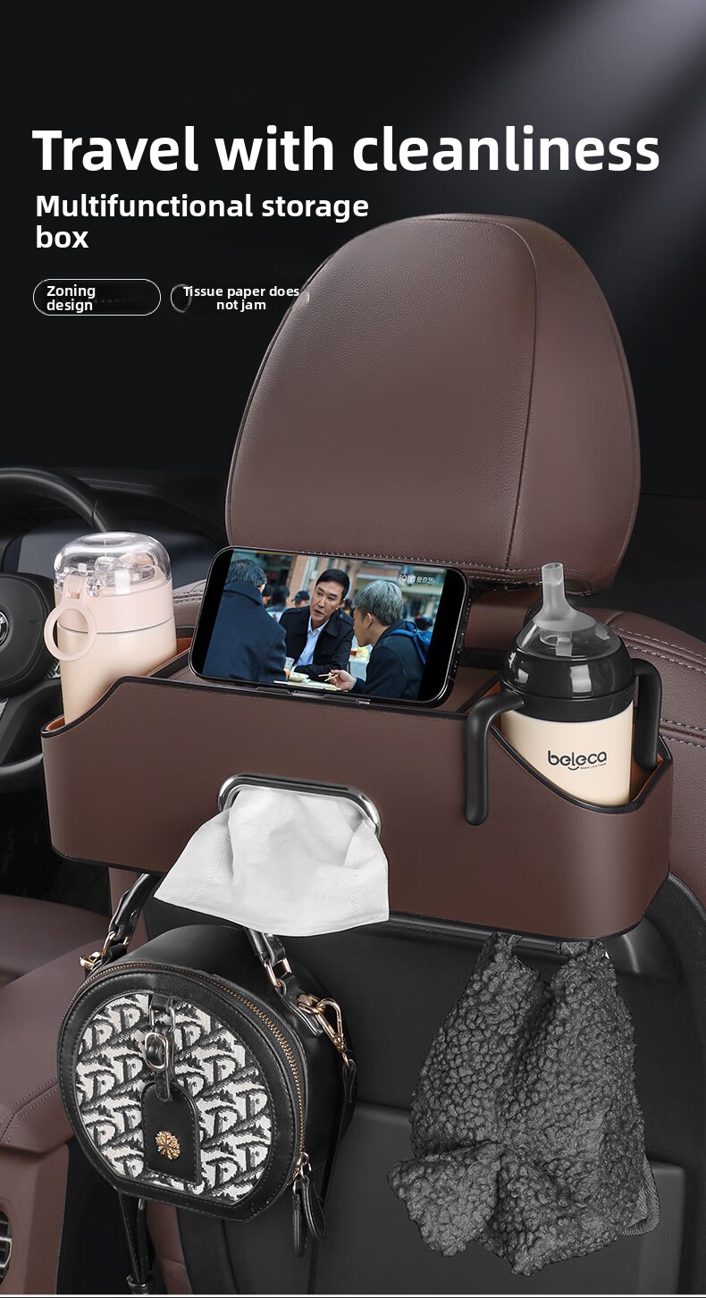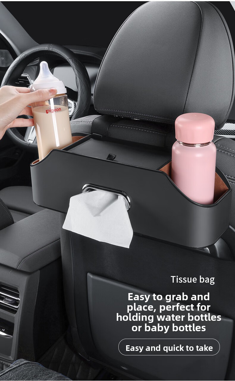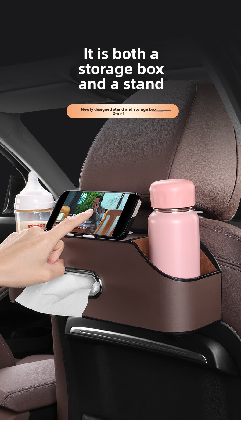 Functions: Storage box, mobile phone holder, water cup holder, tissue compartment