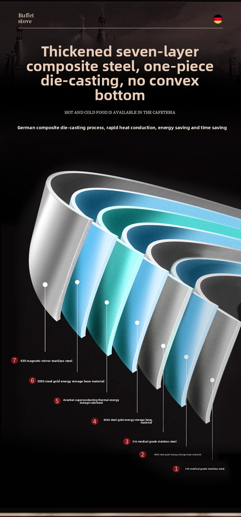 Multi-Layer Bottom: Even heat distribution for efficient cooking.