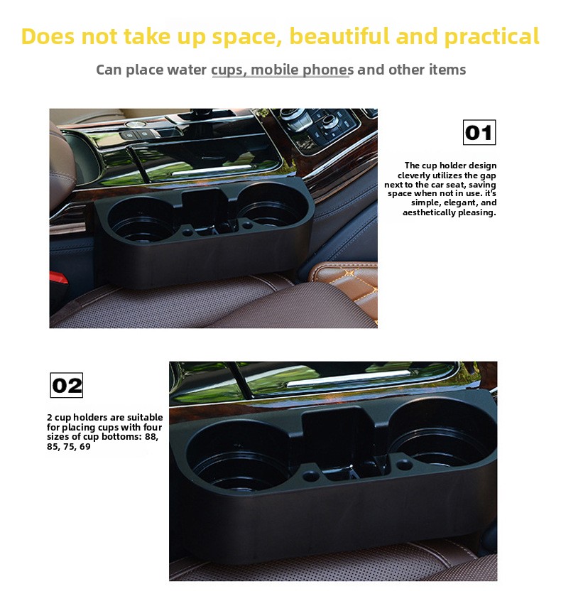 Cup holder diameters: 90mm (top), with tiered bases (88/85/75/69mm)