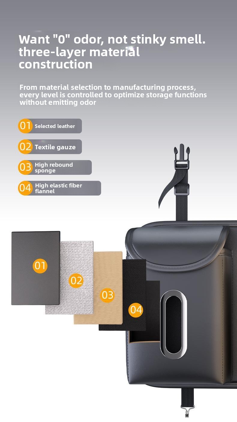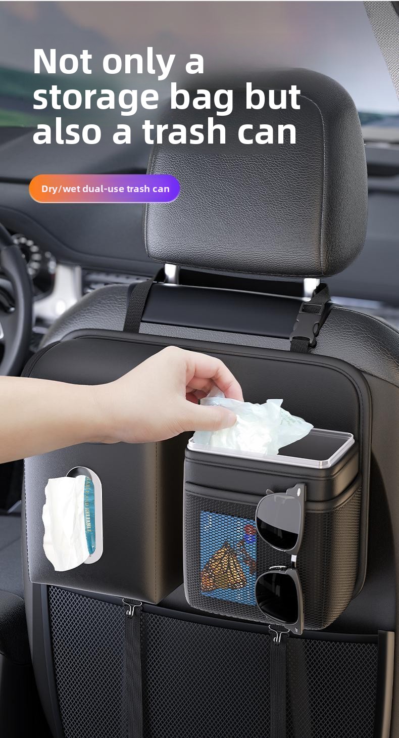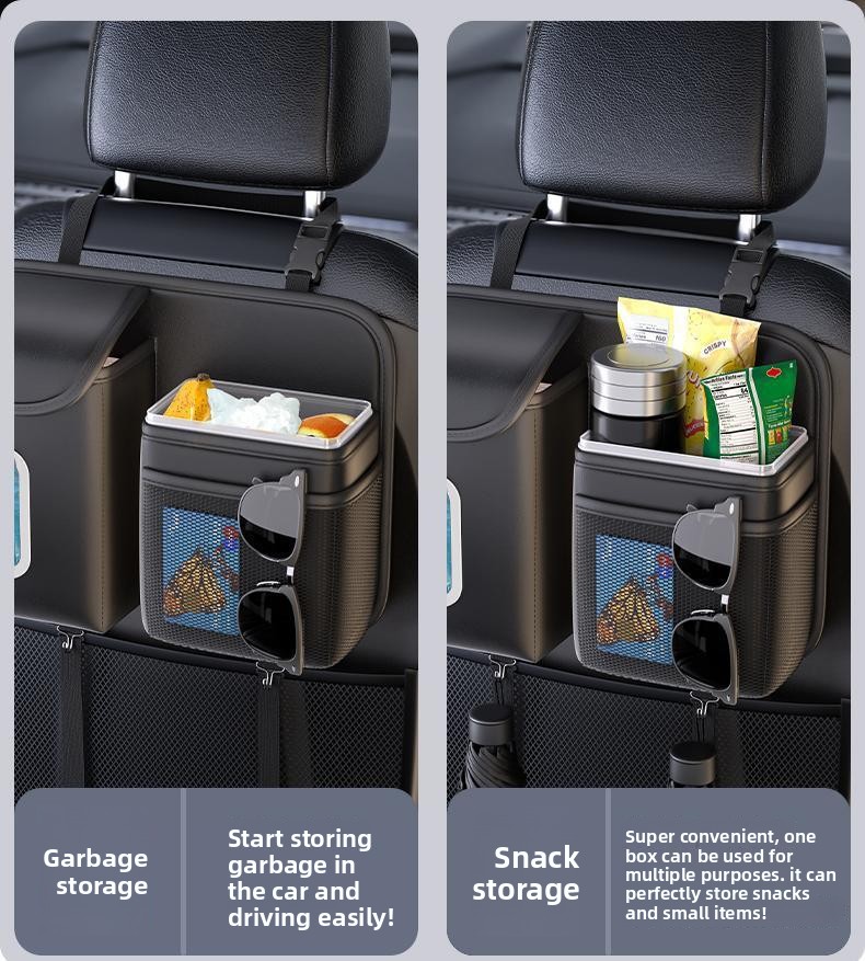 The seat-back hanging design saves floor and console space, making it perfect for storing trash, tissues, and daily essentials within easy reach. Its compression-resistant structure ensures long-lasting durability, even with frequent use.