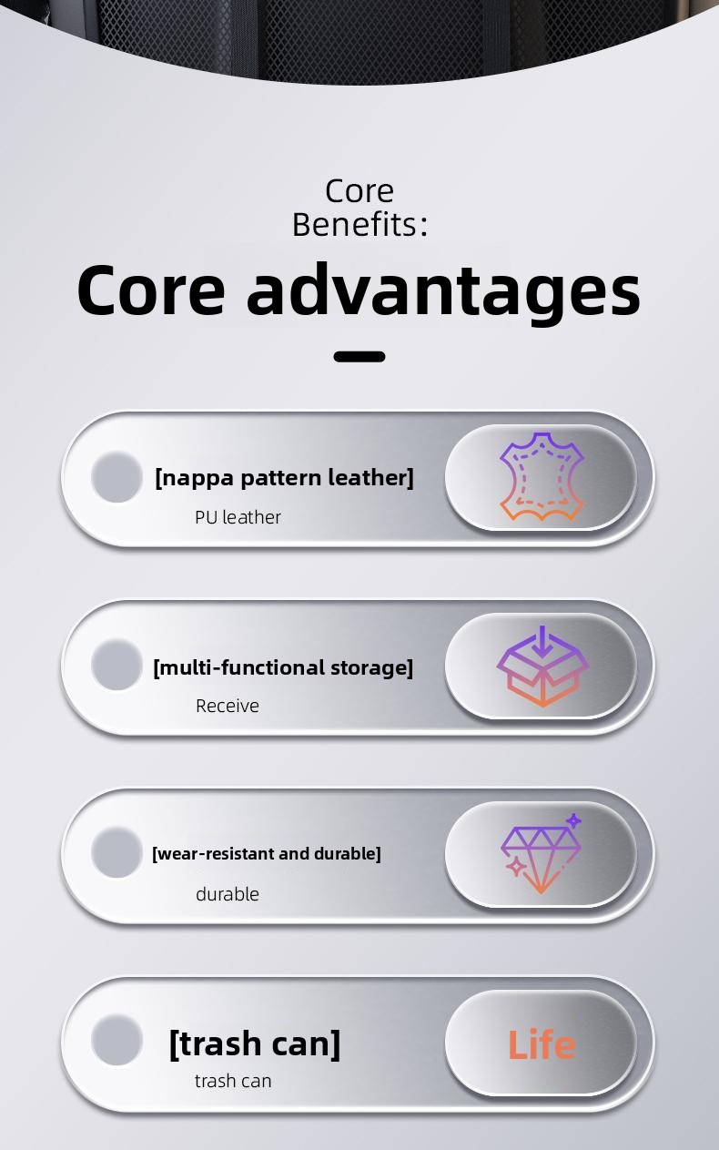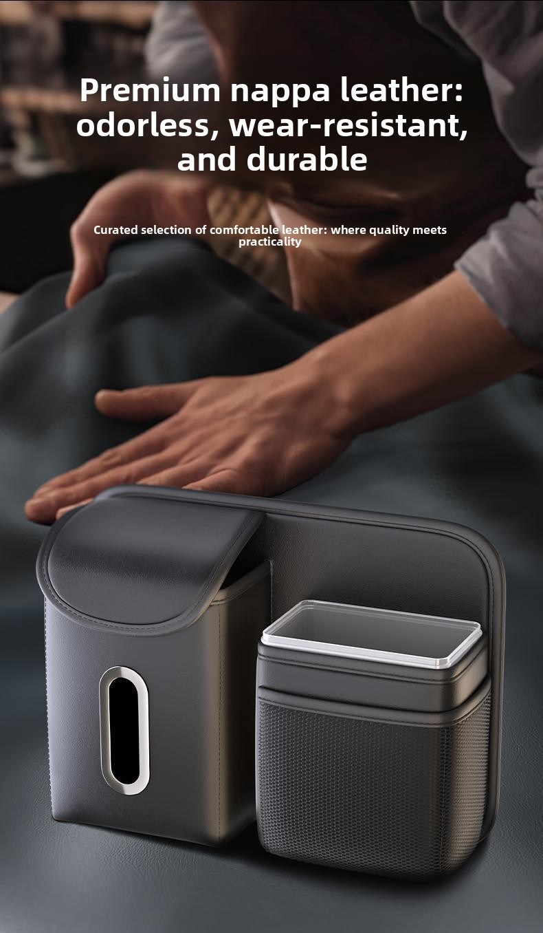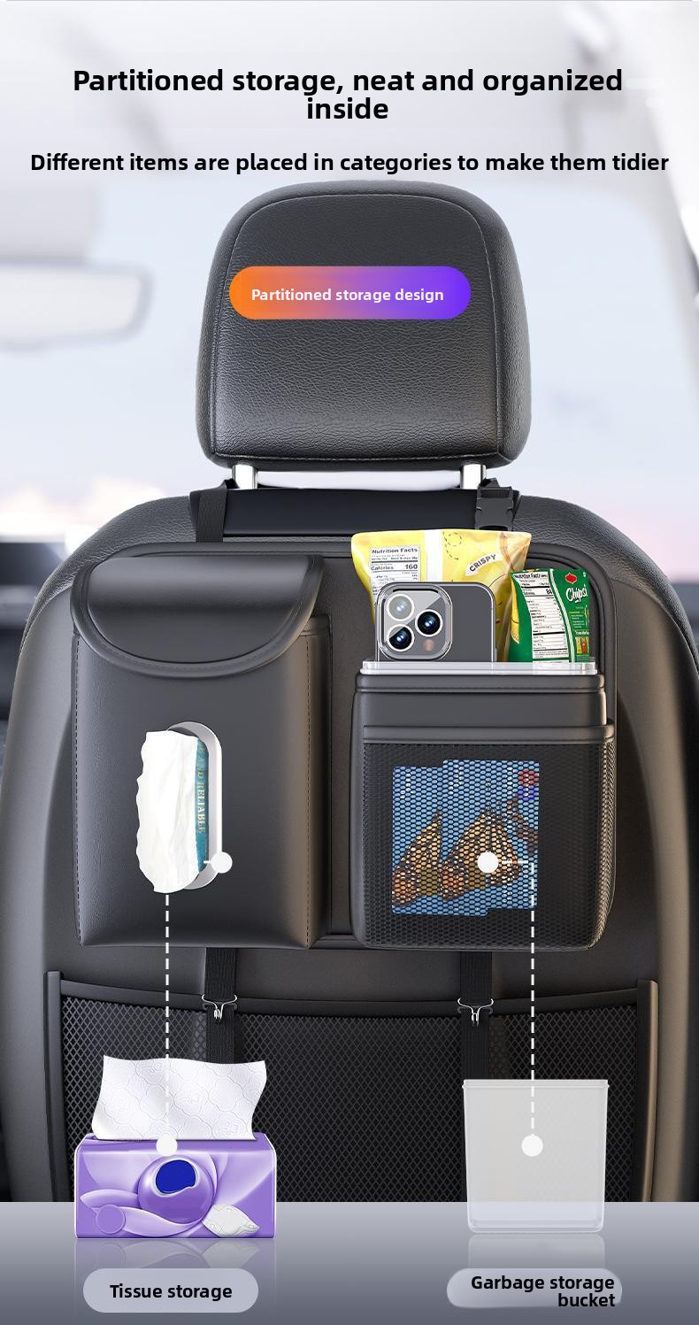 The seat-back hanging design saves floor and console space, making it perfect for storing trash, tissues, and daily essentials within easy reach. Its compression-resistant structure ensures long-lasting durability, even with frequent use.