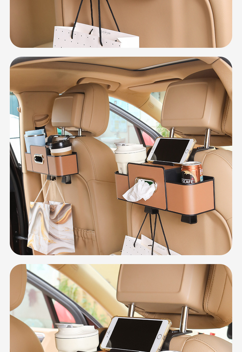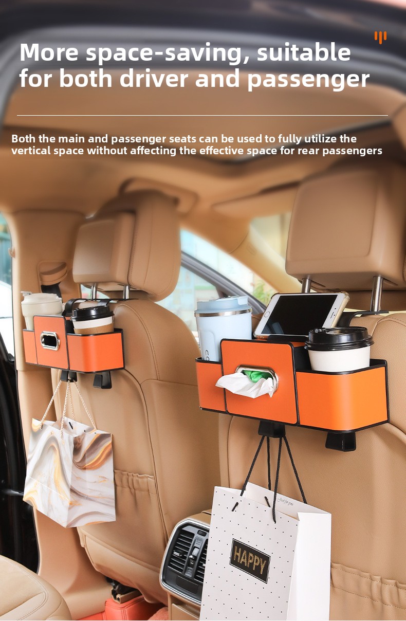 • Space-Saving: Hangs conveniently on the back of car seats to utilize unused space efficiently.