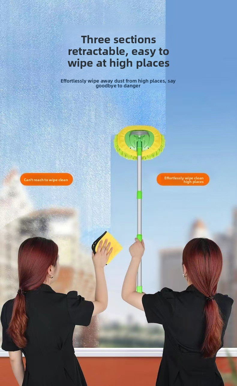 Extendable Chenille Car Wash Mop | Long Handle Cleaning Brush for Cars, Glass & Home Use