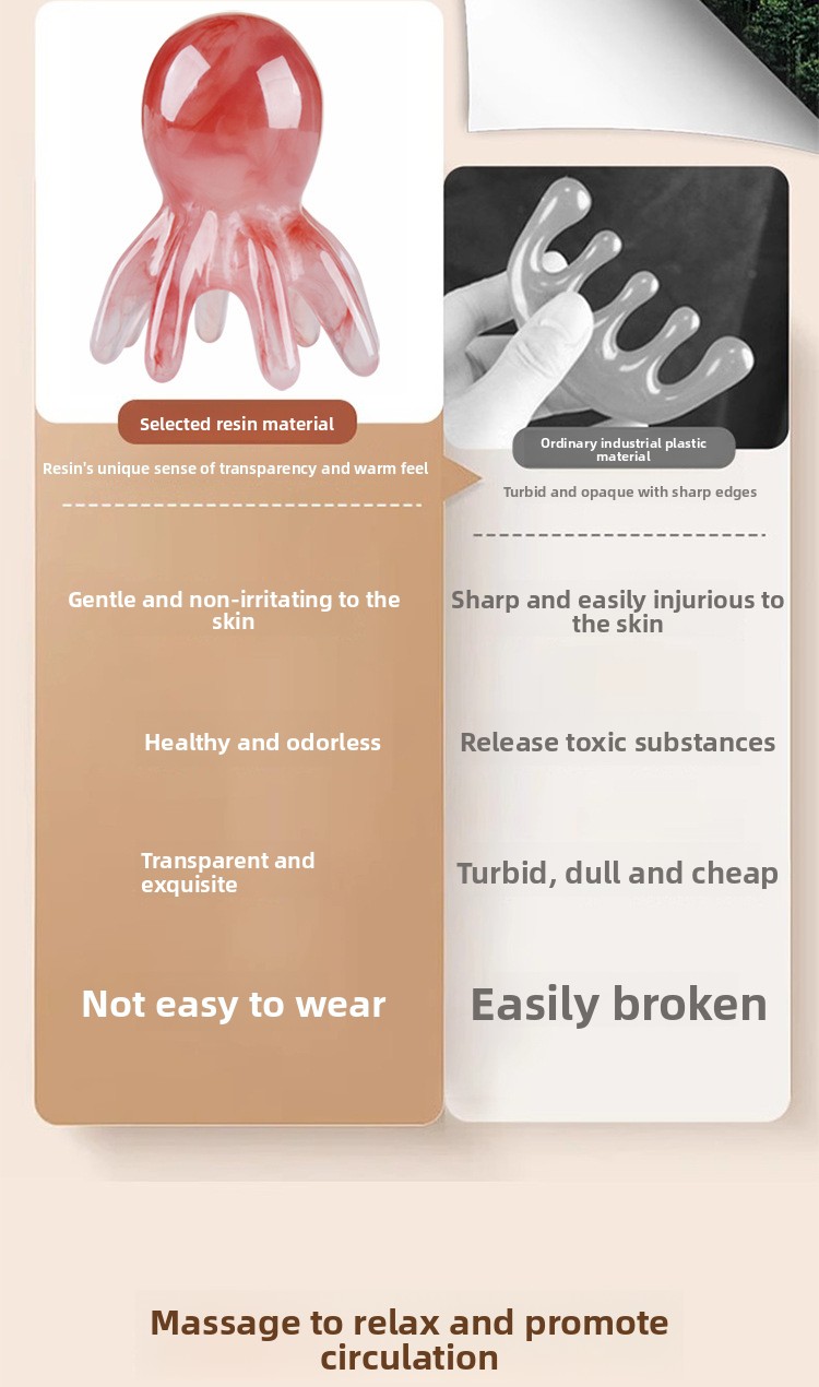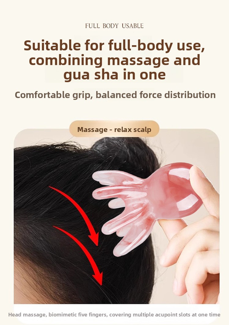 Overview Four-in-one Design: Combines massage comb, head therapy tool, wide-tooth meridian comb, and heart-shaped scraping board for versatile use Resin Material: Durable,...