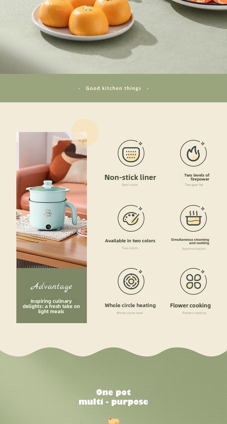 Overview Multifunctional: Can fry, stir-fry, cook rice, and hotpot. Non-stick coating: Ensures easy cleaning and prevents food from sticking. Compact design: Ideal...