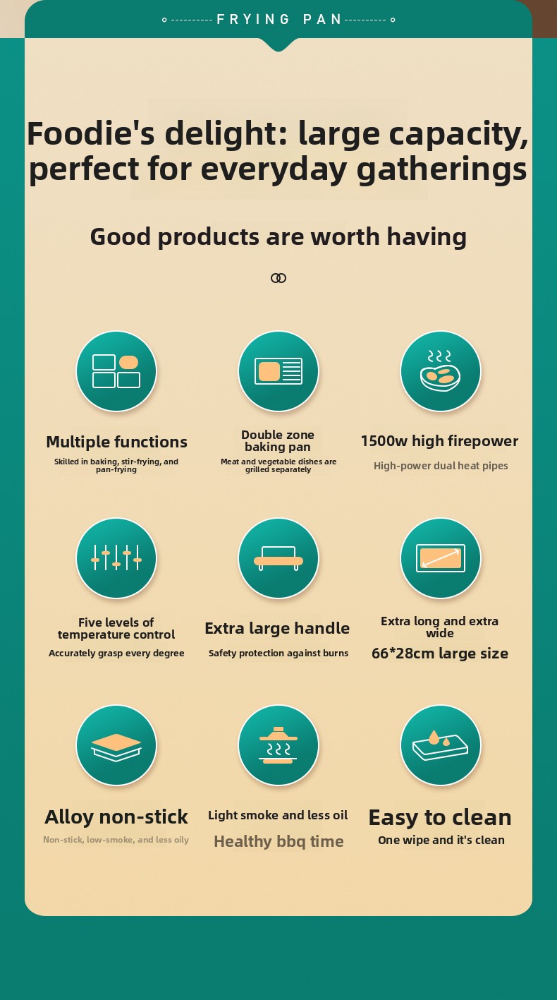 Low-Smoke Design: Reduces smoke during cooking, ensuring a cleaner and more pleasant experience.