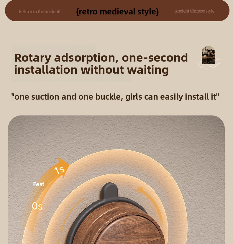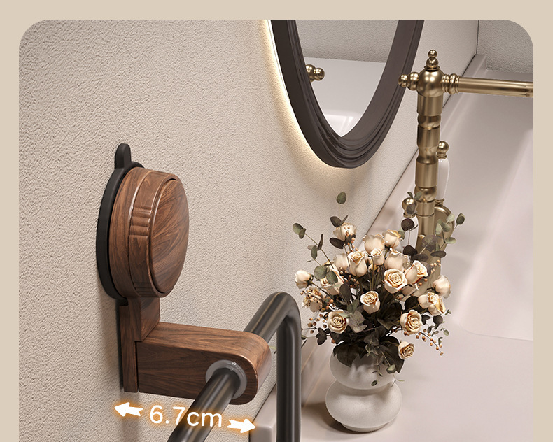 Overview Suction Cup Design: No drilling required, easy installation and removal without damaging walls. Walnut Wood Material: Durable, natural wood finish with...