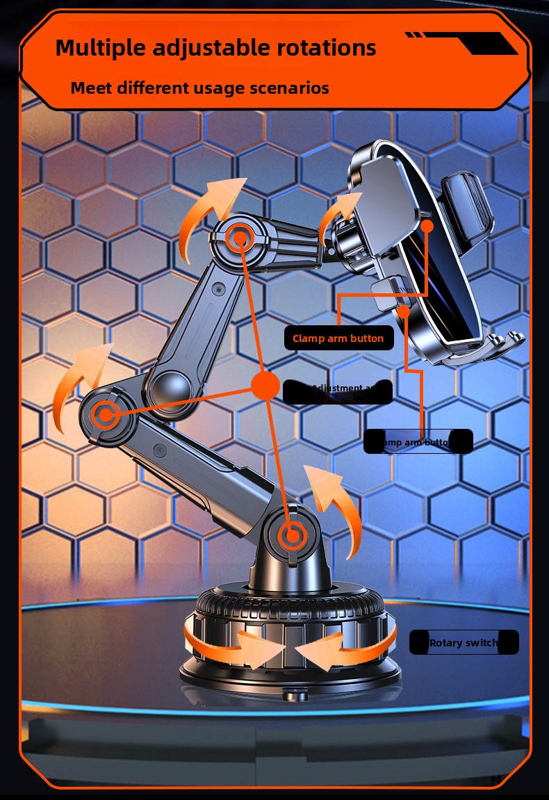 The 360-degree adjustable multi-joint arm allows you to customize your viewing angle for GPS navigation, hands-free calls, and media control. Whether you prefer portrait or landscape mode, this holder delivers flexible positioning without blocking your view.